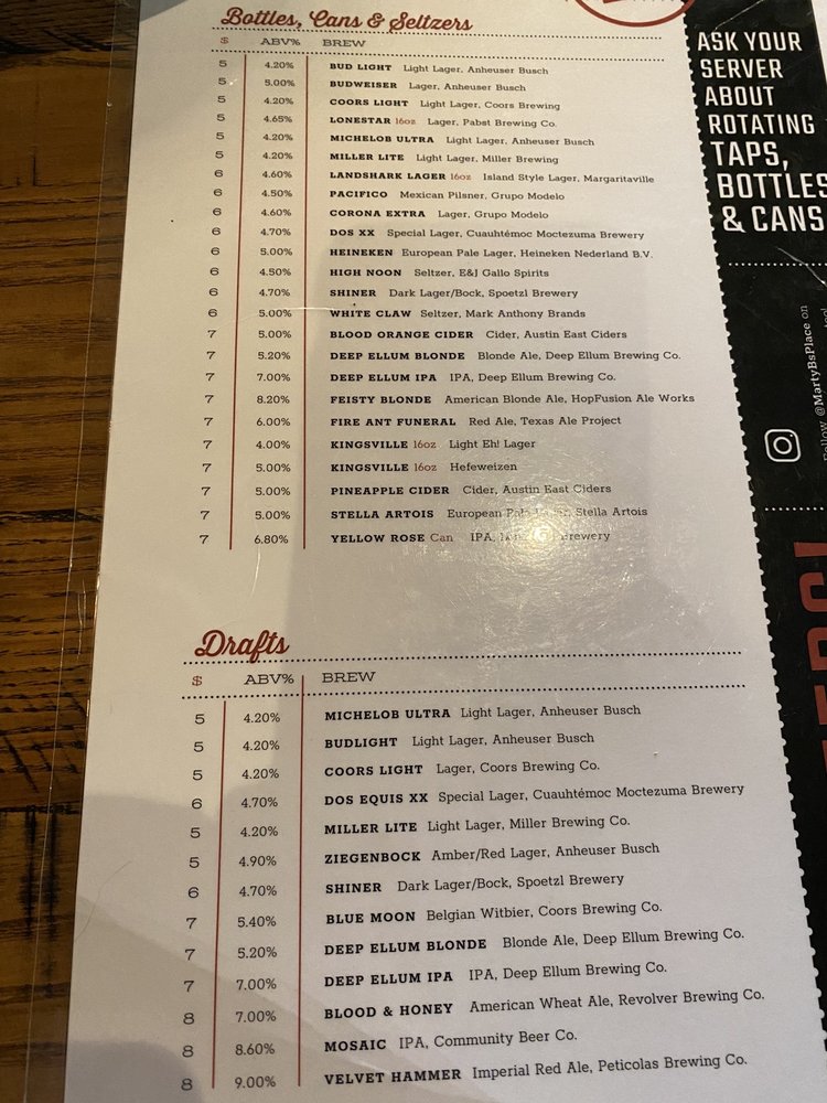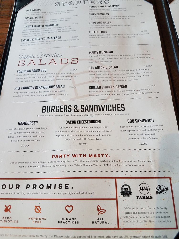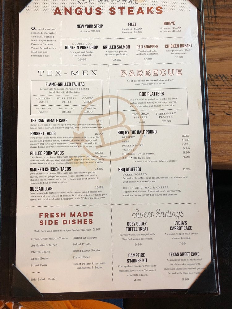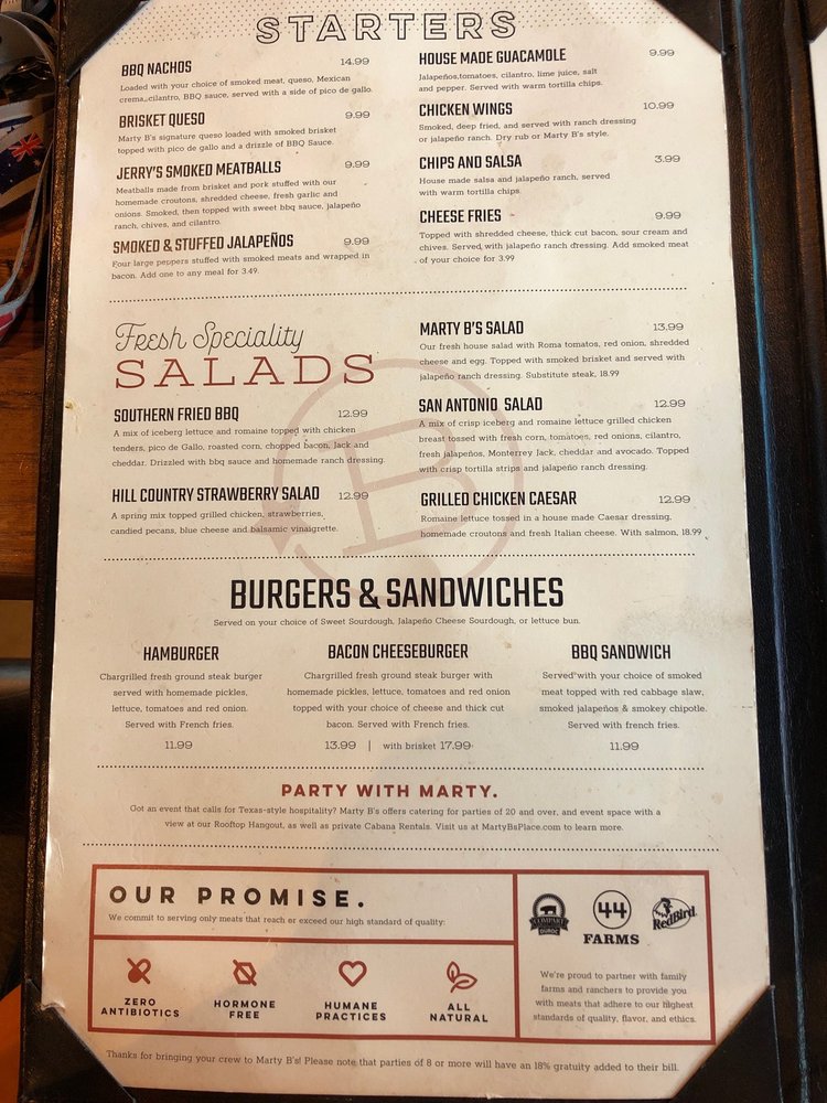 Marty B's Menu (2025 Update)
