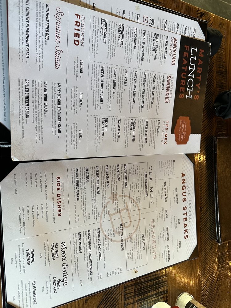 Welcome to Marty B's, a Tex-Mex, Barbeque, and Steakhouse fusion located in Bartonville, TX. This restaurant offers a diverse menu with options for everyone, including keto, vegan, and limited vegetarian choices. From delivery to outdoor seating, Marty B's caters to all diners with its range of utilities. The ambiance is casual, trendy, and lively, making it a great spot for brunch, lunch, dinner, or dessert. With free Wi-Fi, full bar, and happy hour specials, there's something for everyone to enjoy. The restaurant also provides private dining options, catering services, and even welcomes dogs. Overall, Marty B's aims to create a memorable dining experience with its flavorful dishes and inviting atmosphere.